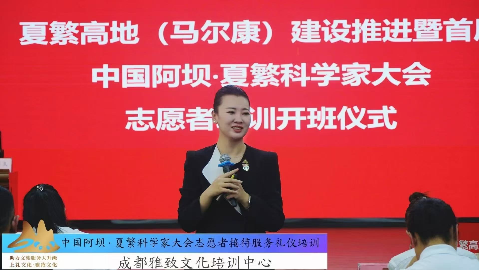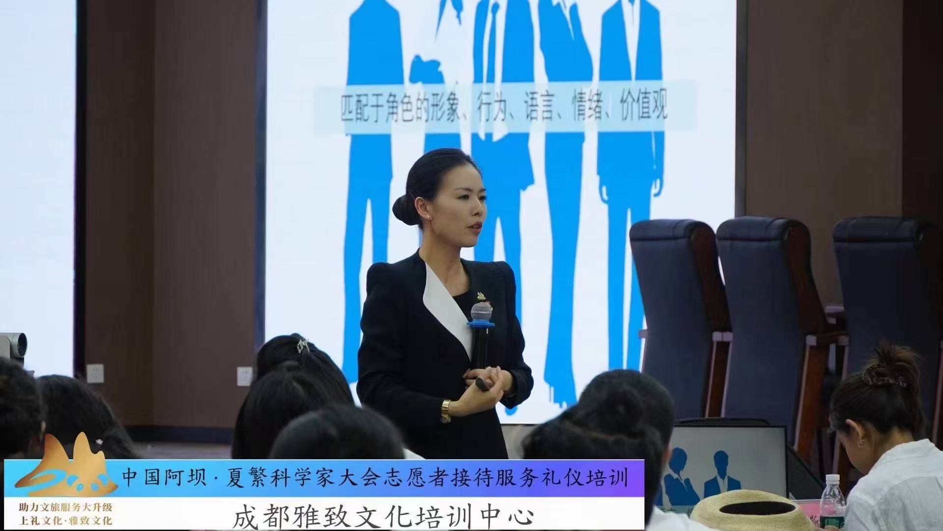 为保障中国阿坝·夏繁科学家大会的高规格接待服务水平,成都雅致文化培训中心金牌讲师赵晋、张博文、薛涛三位资深礼仪讲师现场开展志愿者专业培训。本次培训以"专业、精准、温暖"为核心理念,通过系统化课程设计,全面提升志愿者团队的综合服务能力,确保大会接待工作尽显阿坝风采。