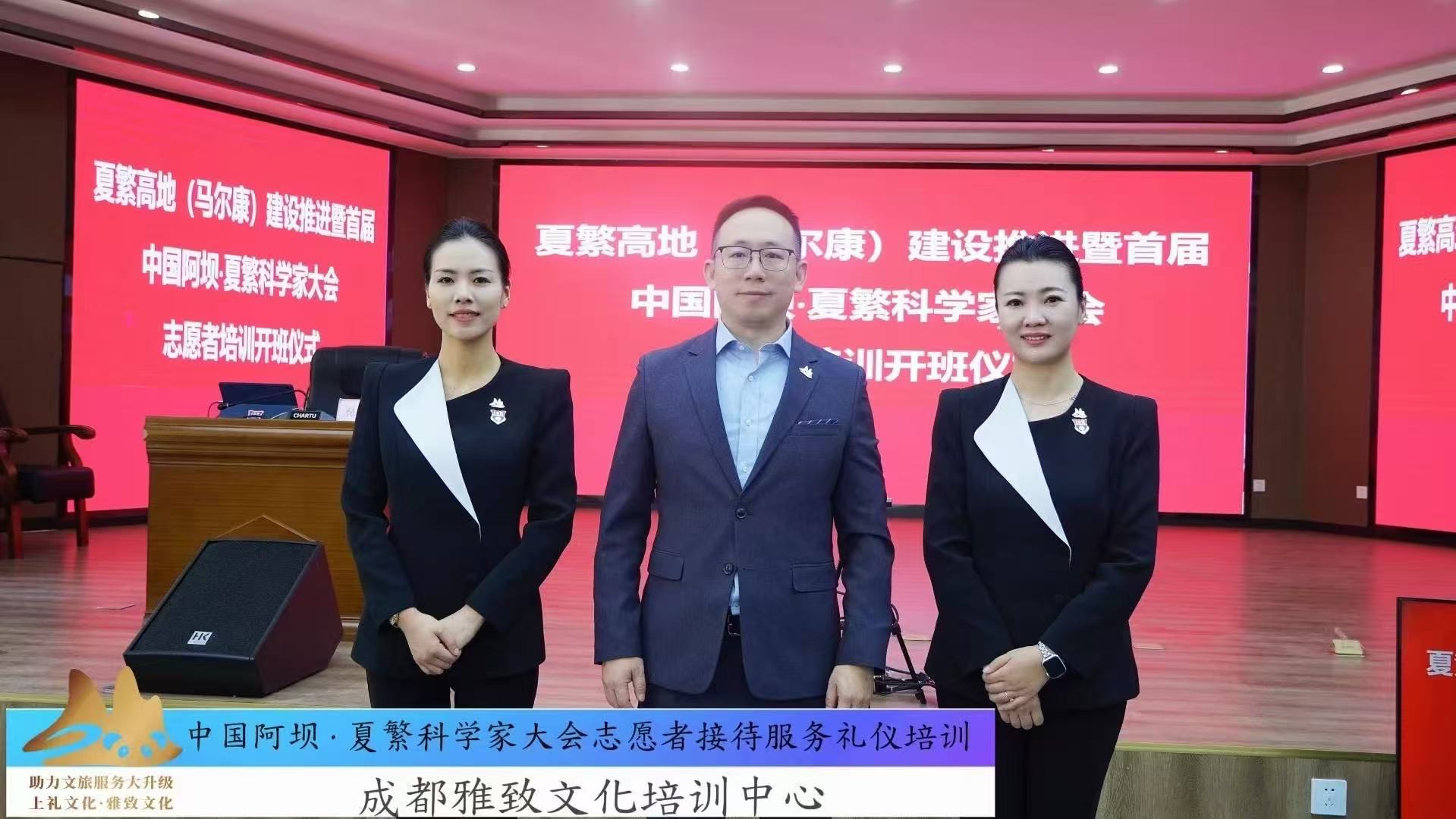为保障中国阿坝·夏繁科学家大会的高规格接待服务水平,成都雅致文化培训中心金牌讲师赵晋、张博文、薛涛三位资深礼仪讲师现场开展志愿者专业培训。本次培训以"专业、精准、温暖"为核心理念,通过系统化课程设计,全面提升志愿者团队的综合服务能力,确保大会接待工作尽显阿坝风采。